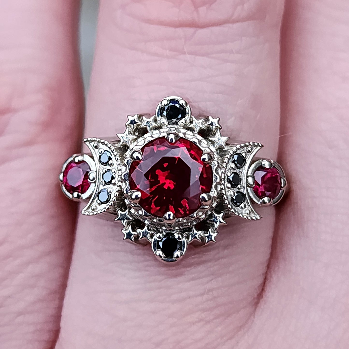 - Side Gems - 2 largest gems in the cups of the moons can be set with your choice of Chatham Gem or most natural colored gemstone approx. weight is .30 carats. The smaller gems above and below the center stone and in the cups of the moons can be set with natural diamonds VS clarity GH color approximate weight of .12 carats(shown). Or natural heat treated black diamonds