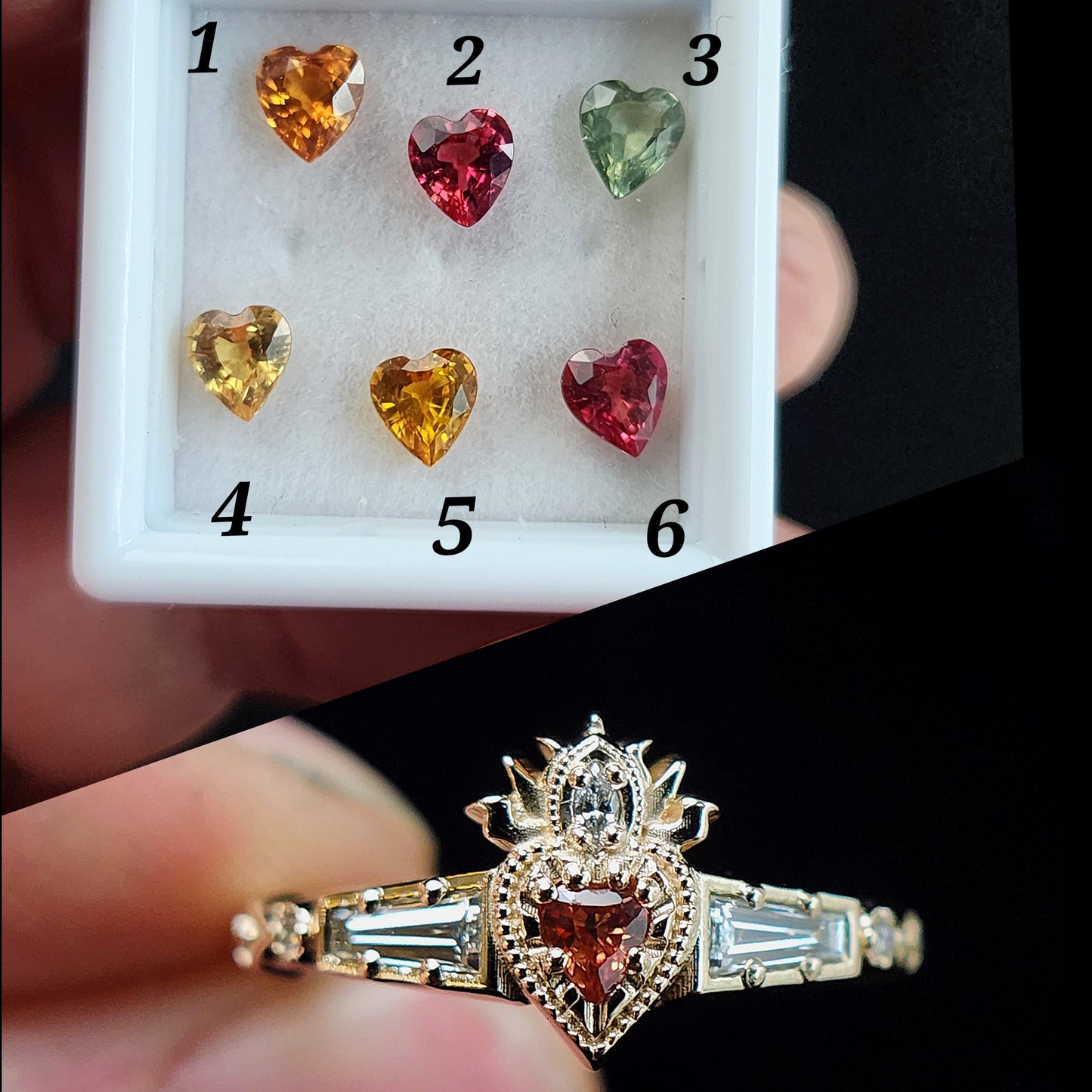 Ready to Ship Size 6-8 - Cosmic Love Flaming Heart Ring with Orange Sapphire and Lab Diamonds - 14k Yellow Gold $1,565.00 Sold Out