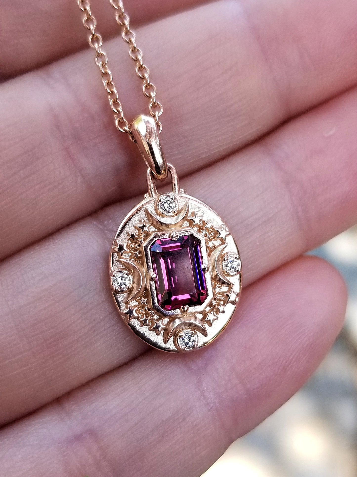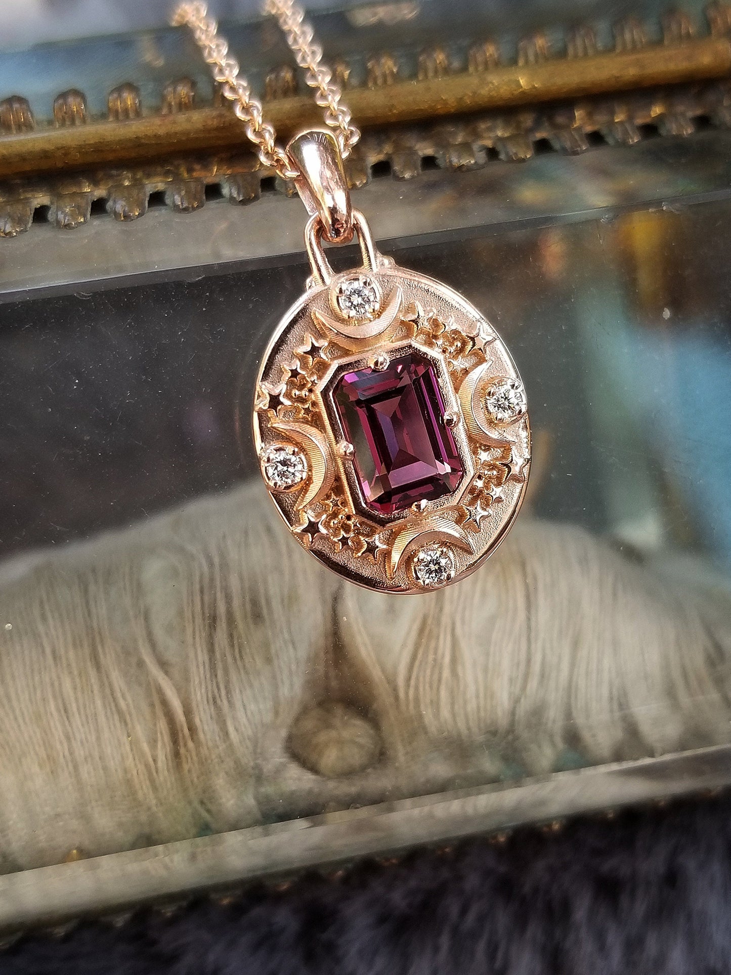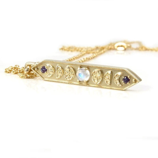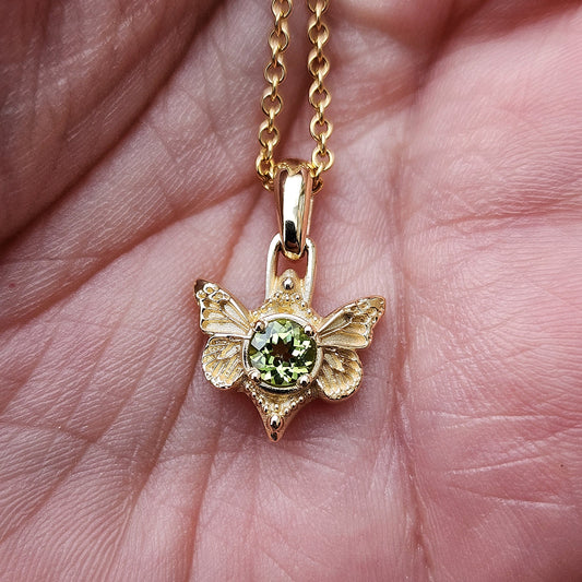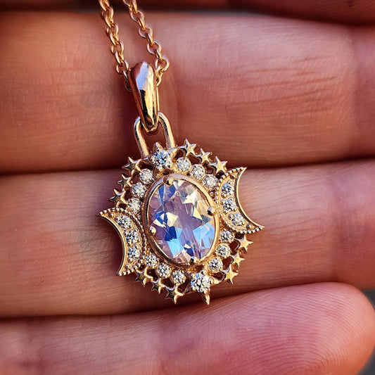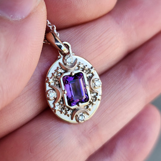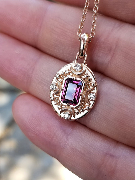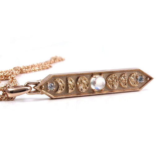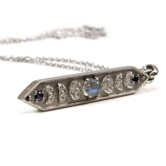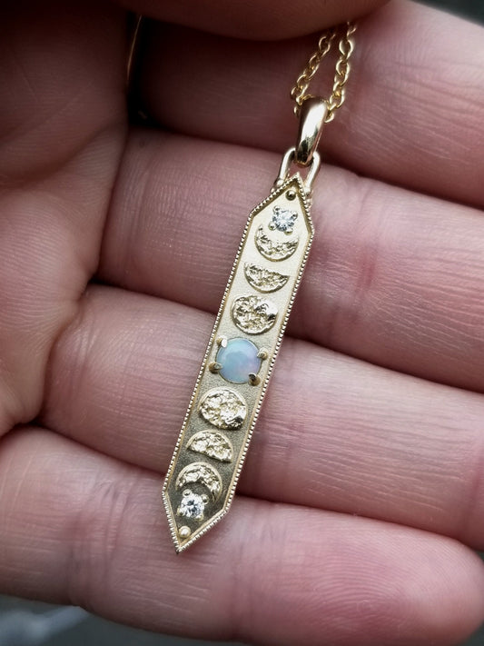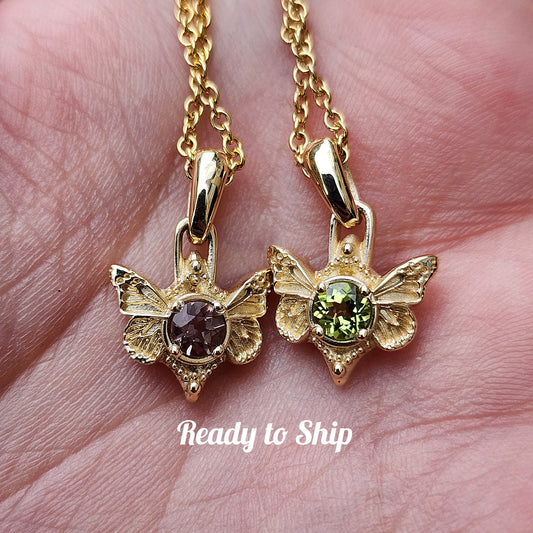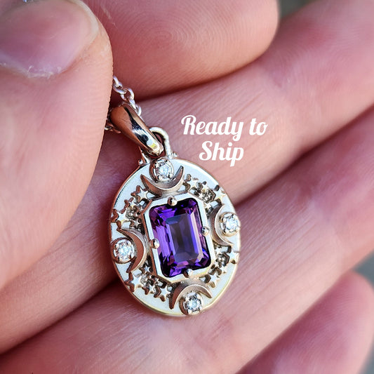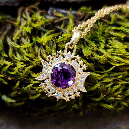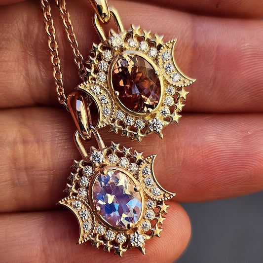 Ready to Ship Serena Moon Pendants with Crescent Moons and Natural Diamonds and Green Moissanite - 14k Gold Nature Inspired Fine Jewelry