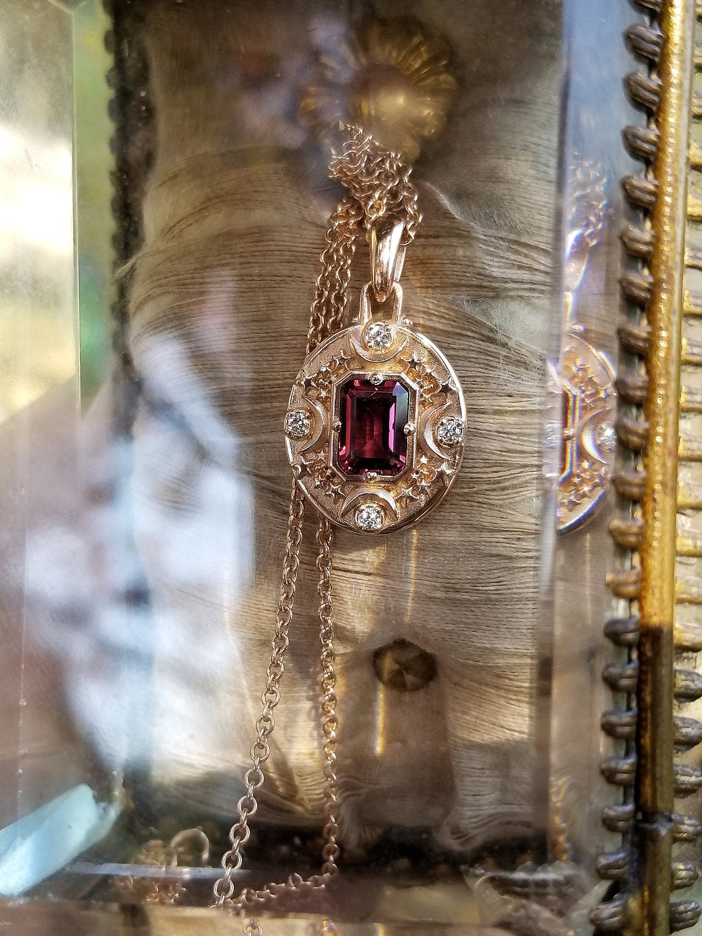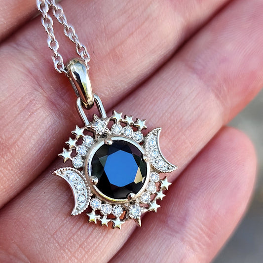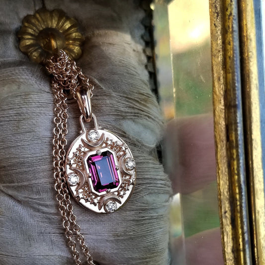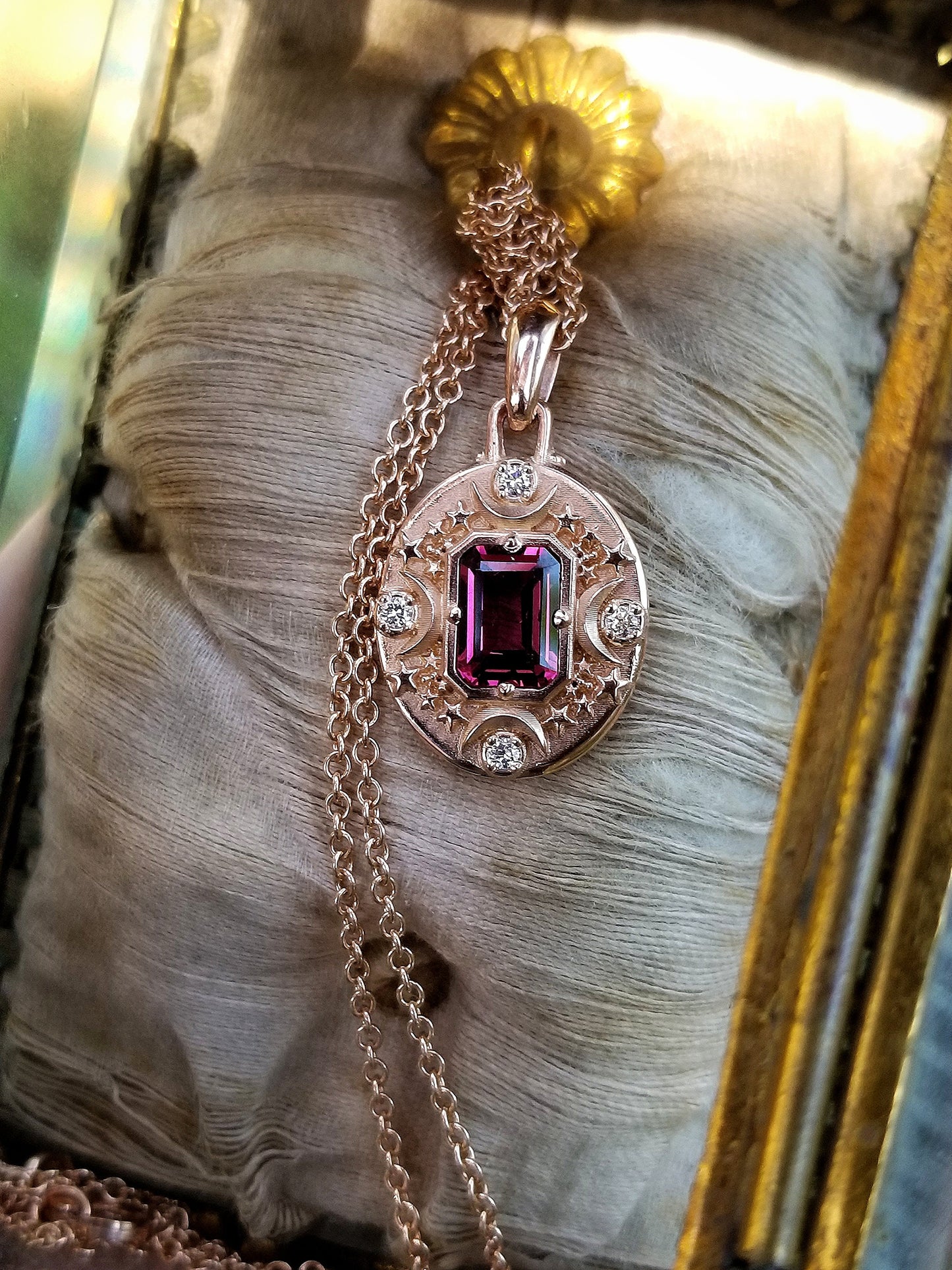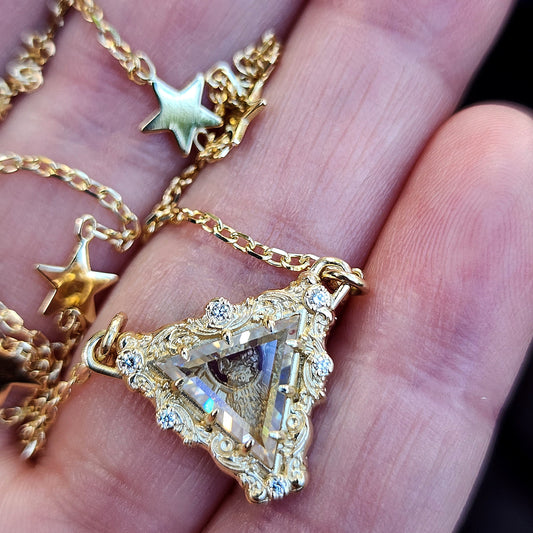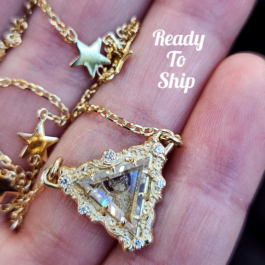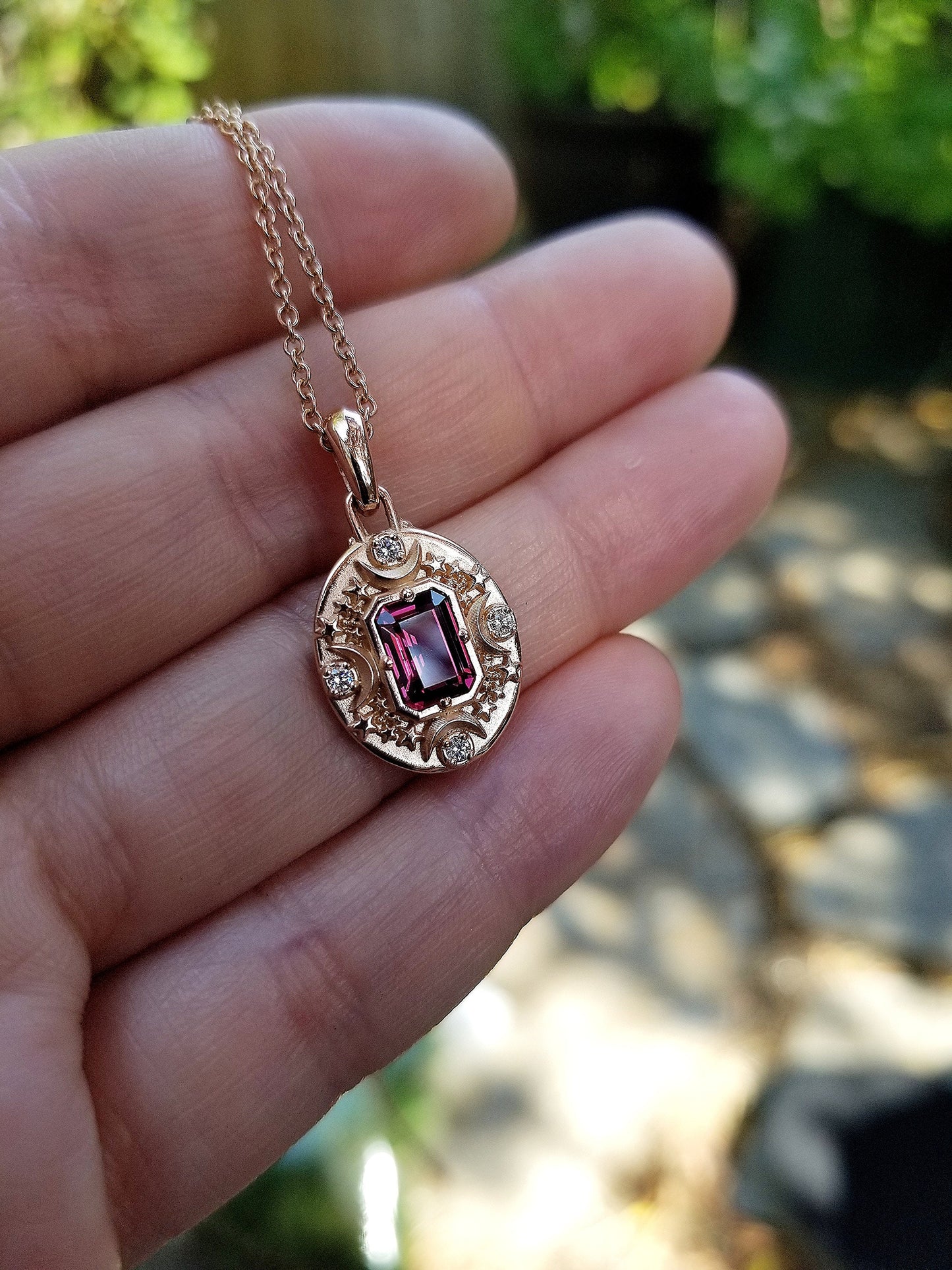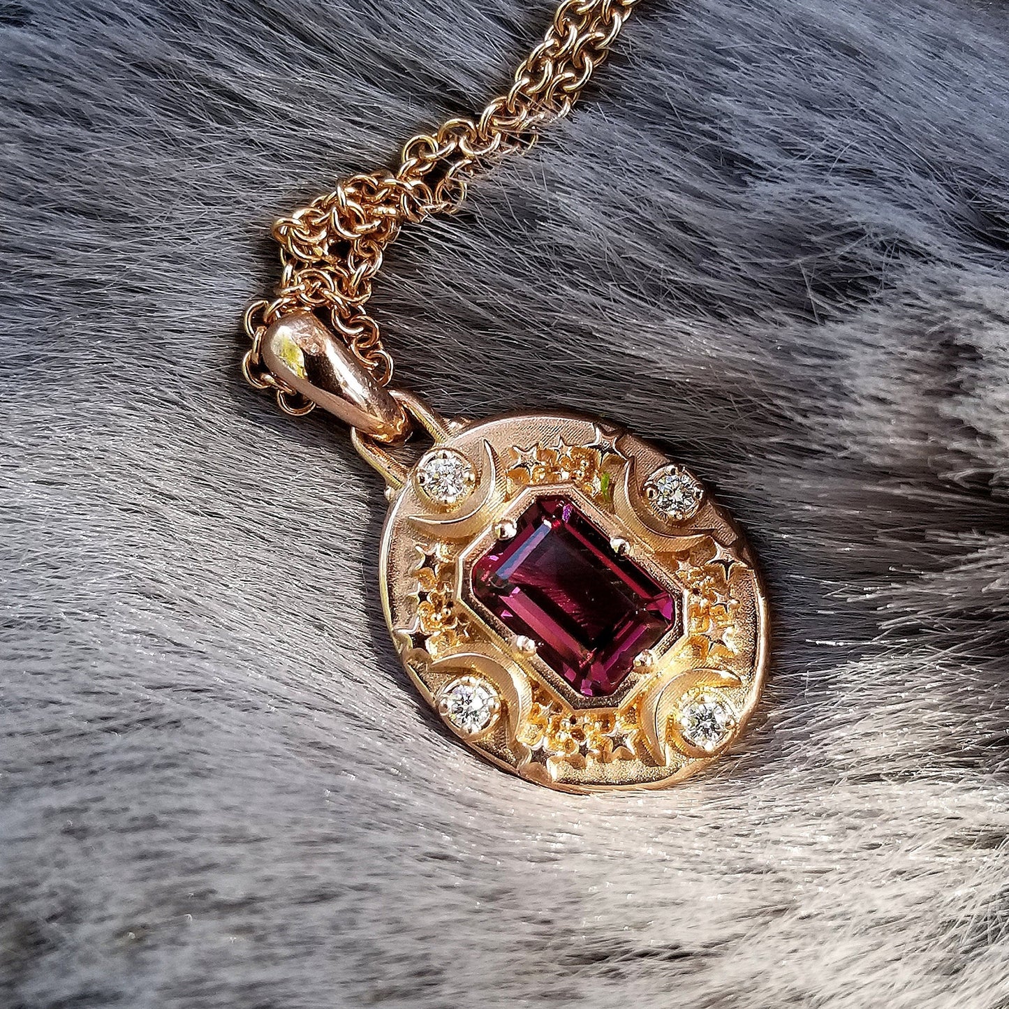 Ready to Ship Serena Moon Pendants with Crescent Moons and Natural Diamonds and Green Moissanite - 14k Gold Nature Inspired Fine Jewelry