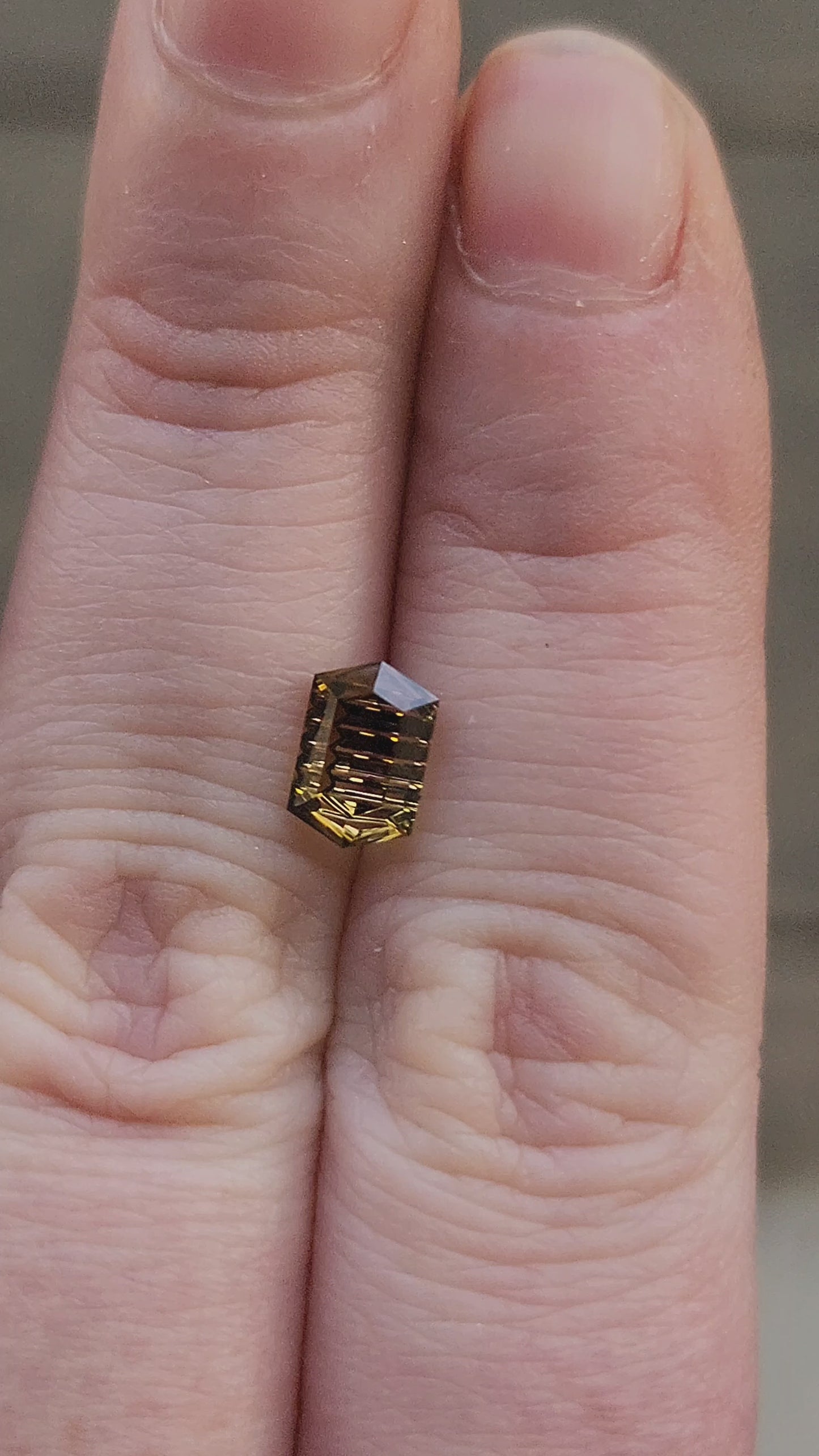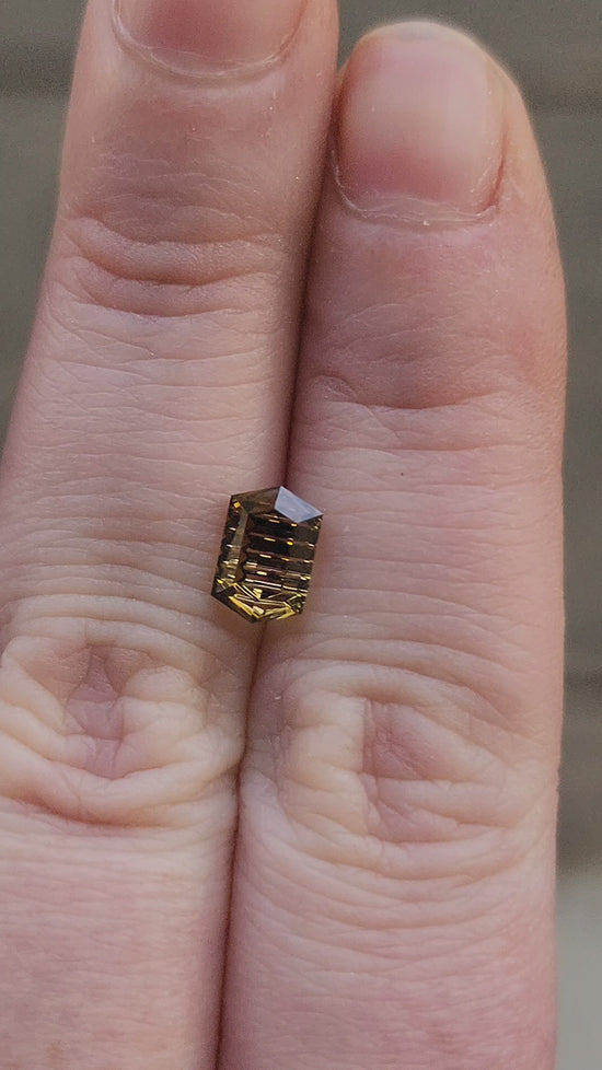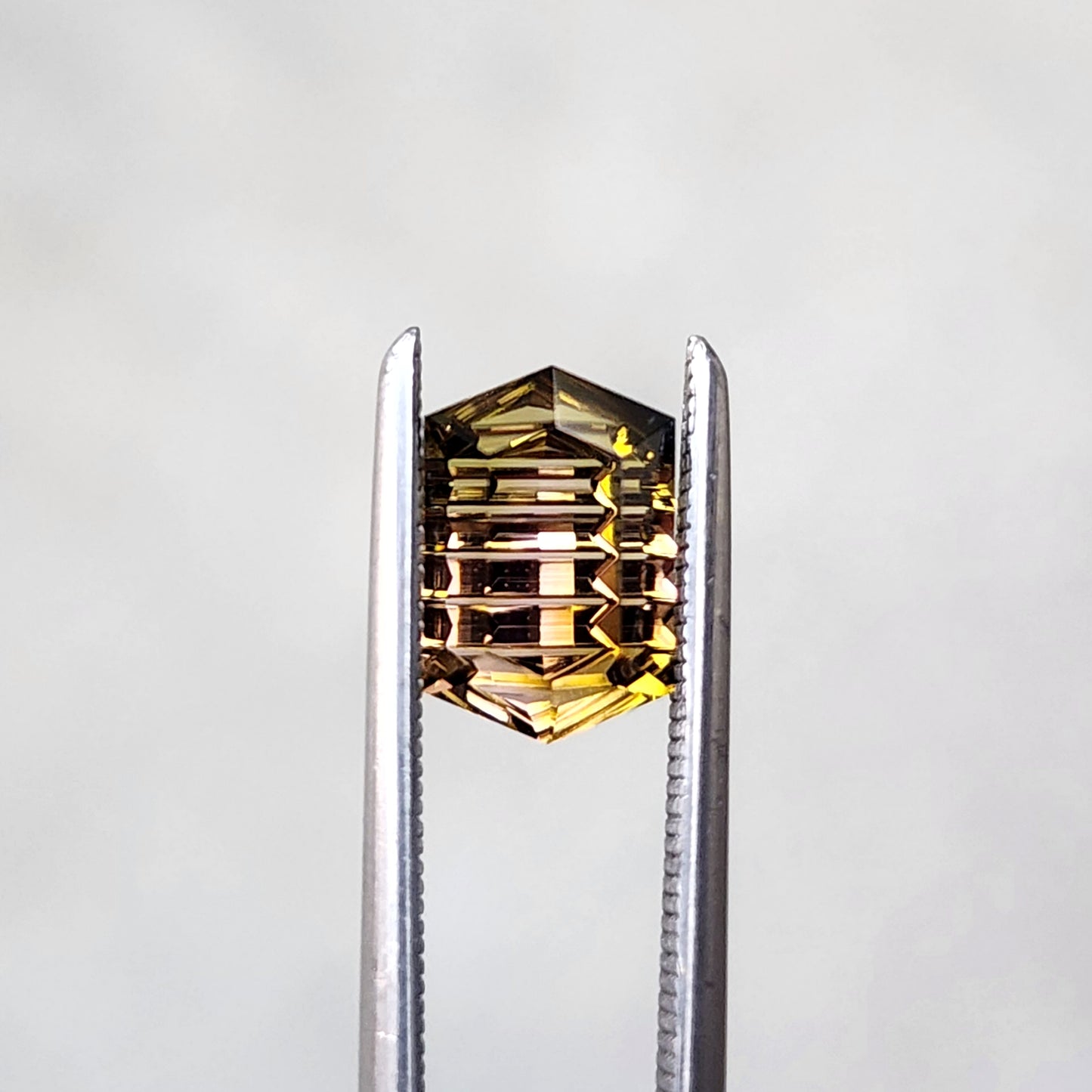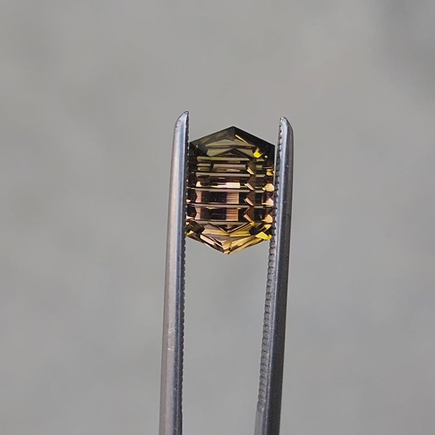 Pink to green bi-color natural tourmaline, fantasy cut hexagon