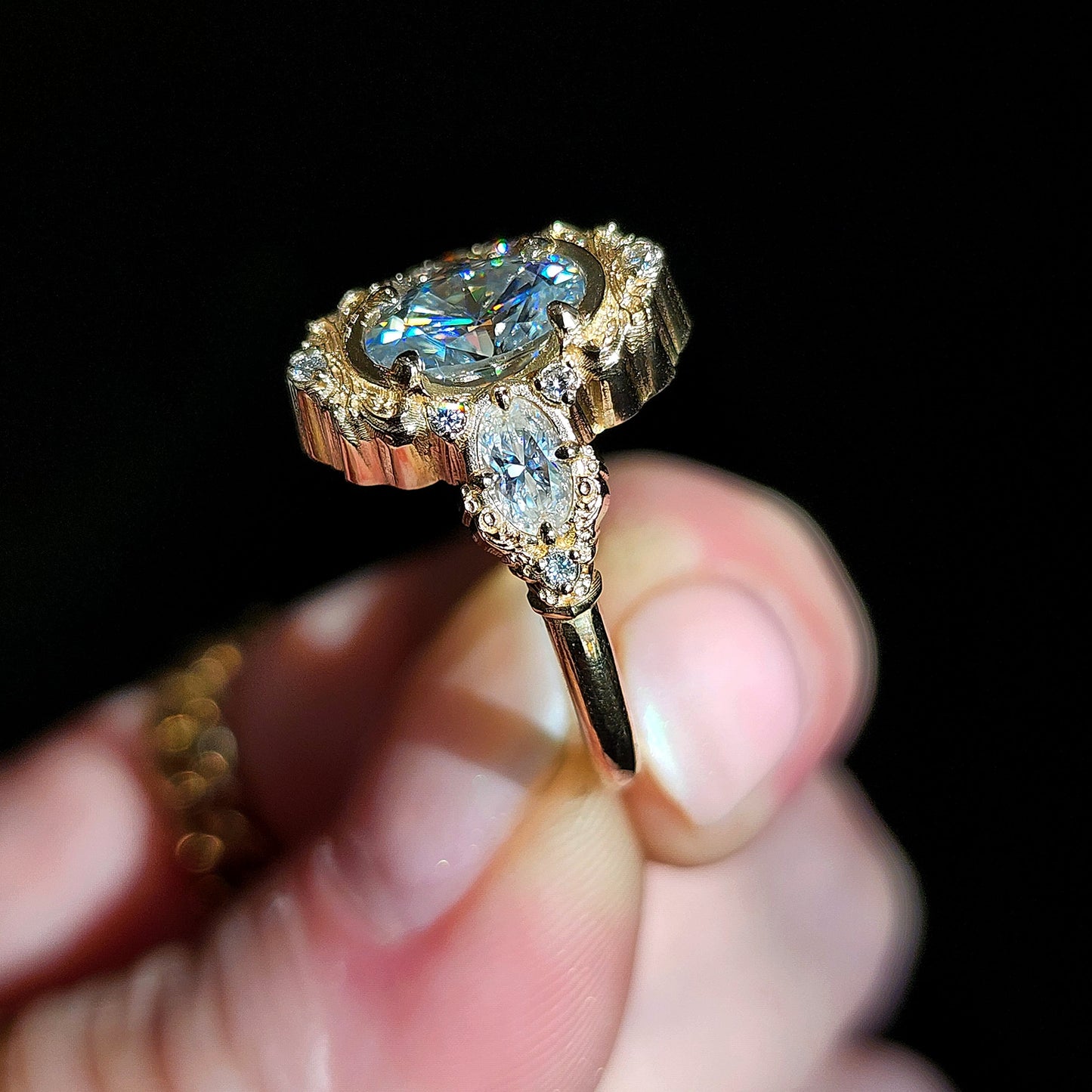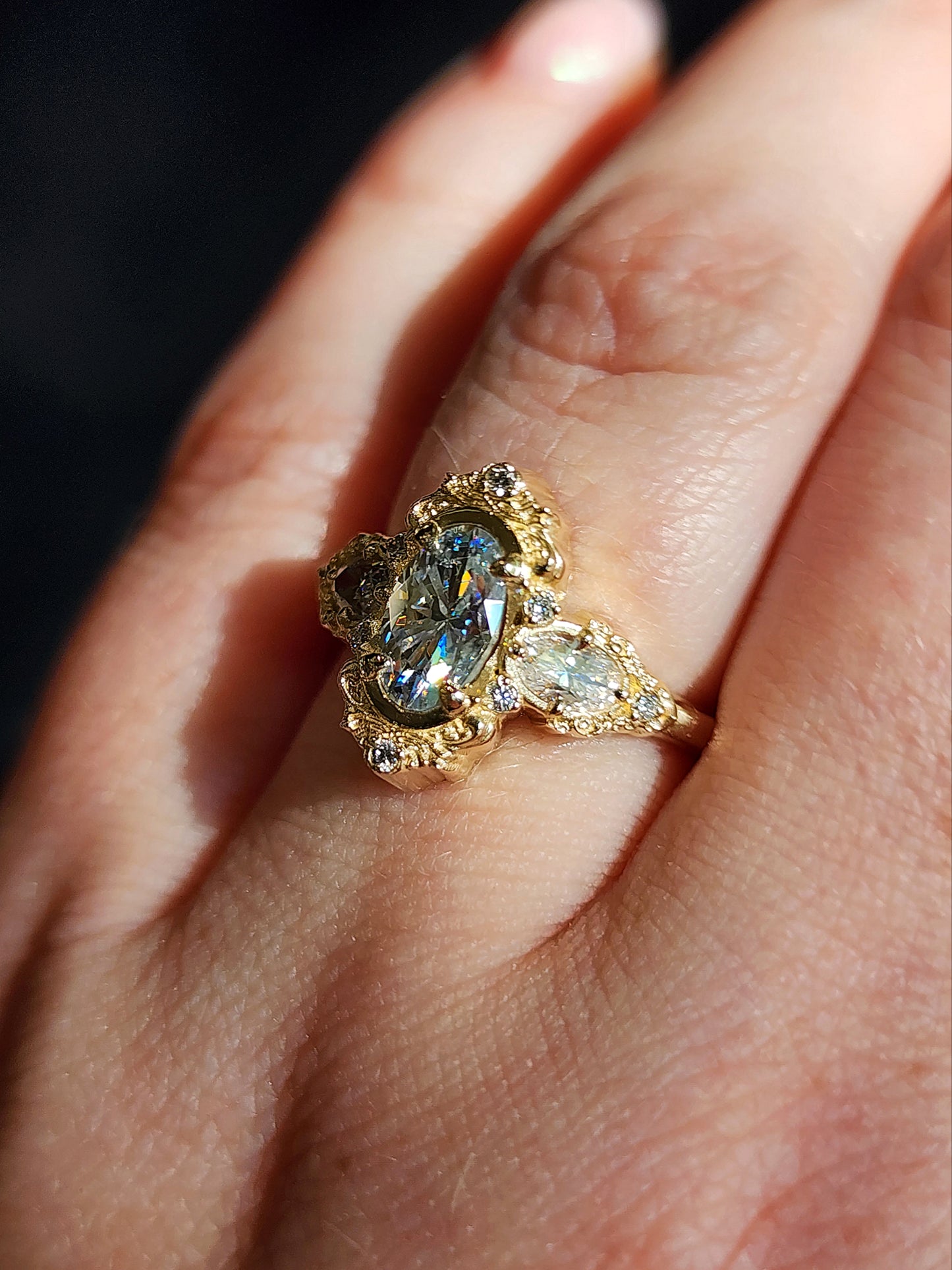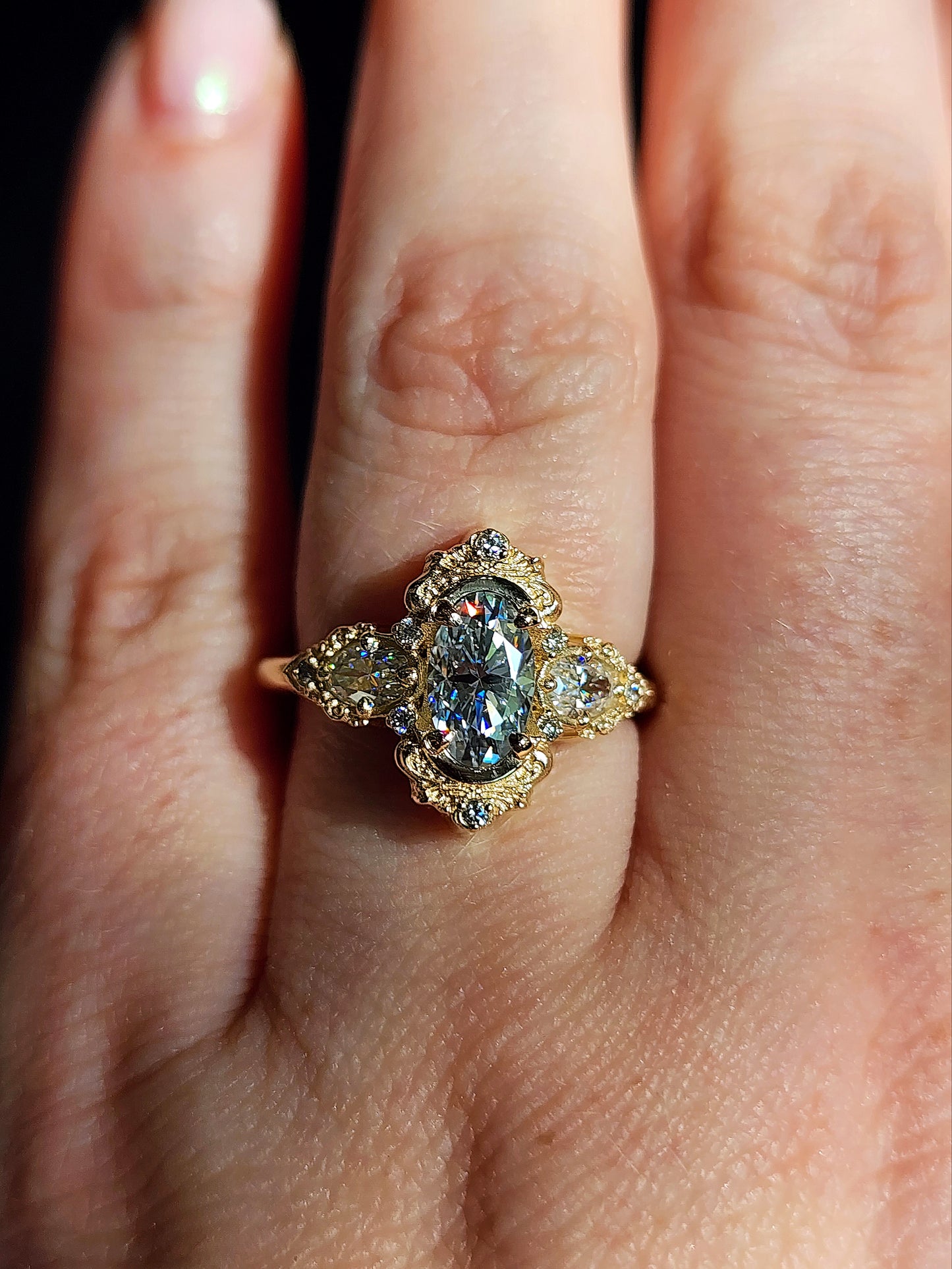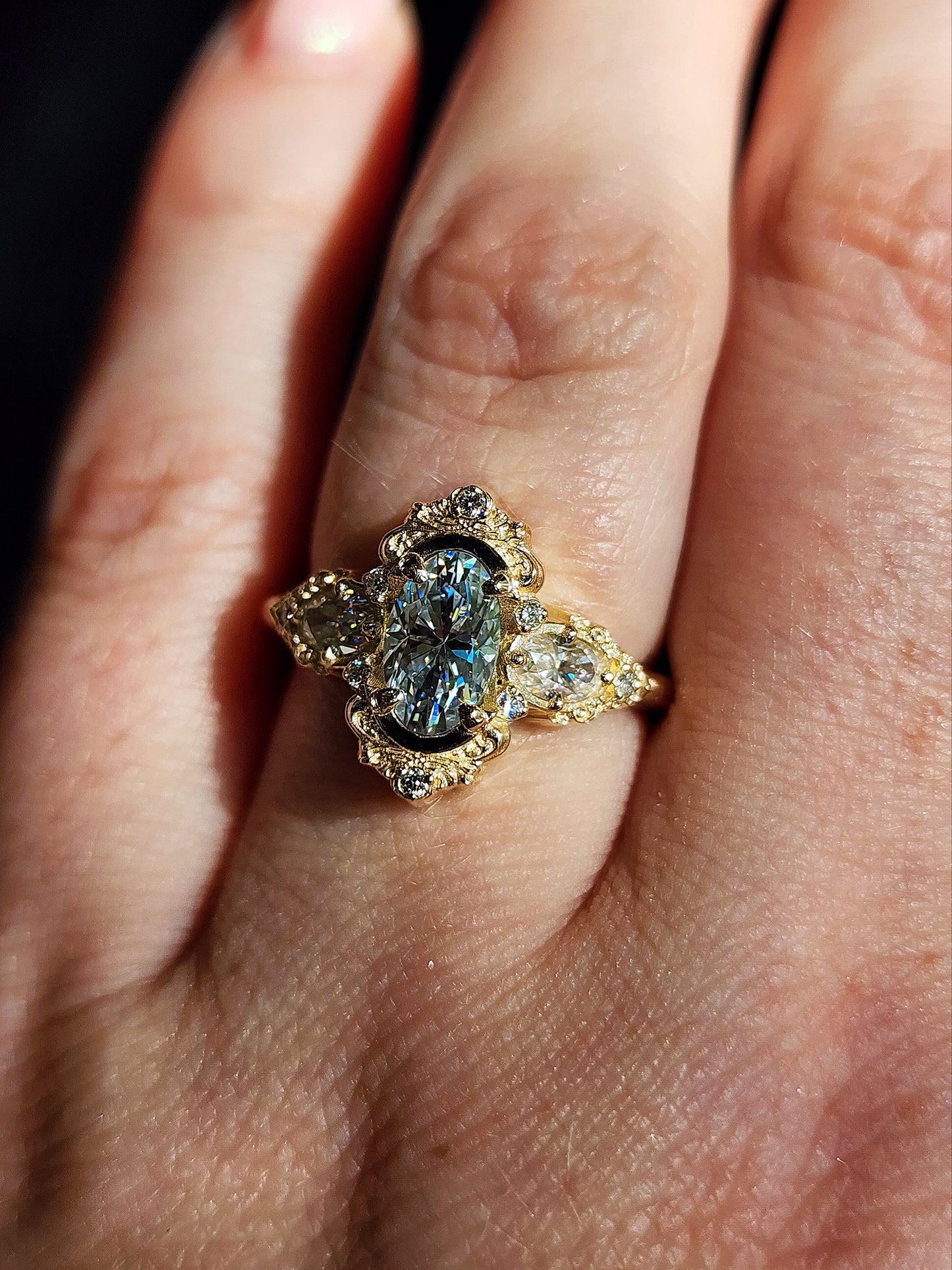 *A note regarding center stones. The oval moissanites tend to be cut to be deeper in profile than the lab diamonds, so if you are looking for a lower profile ring I would recommend the lab diamond center stones.