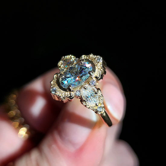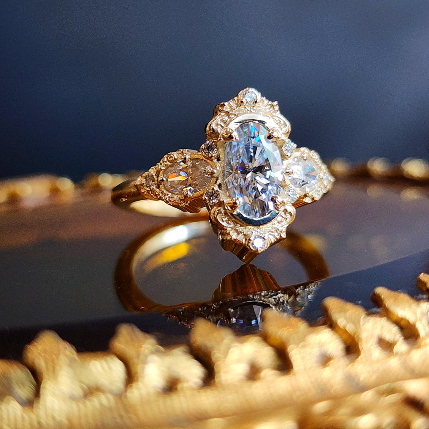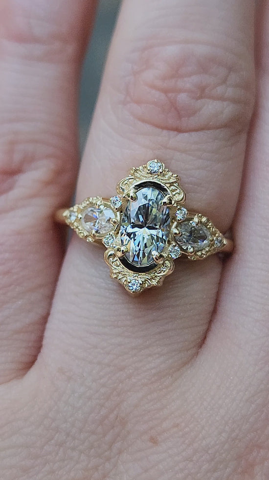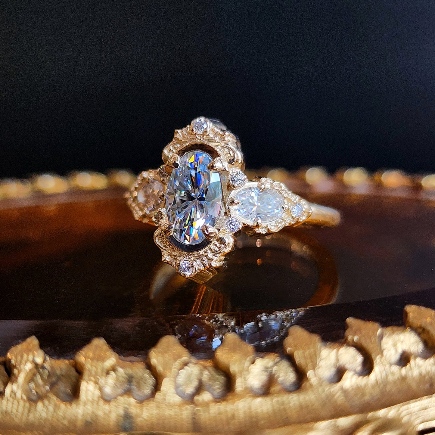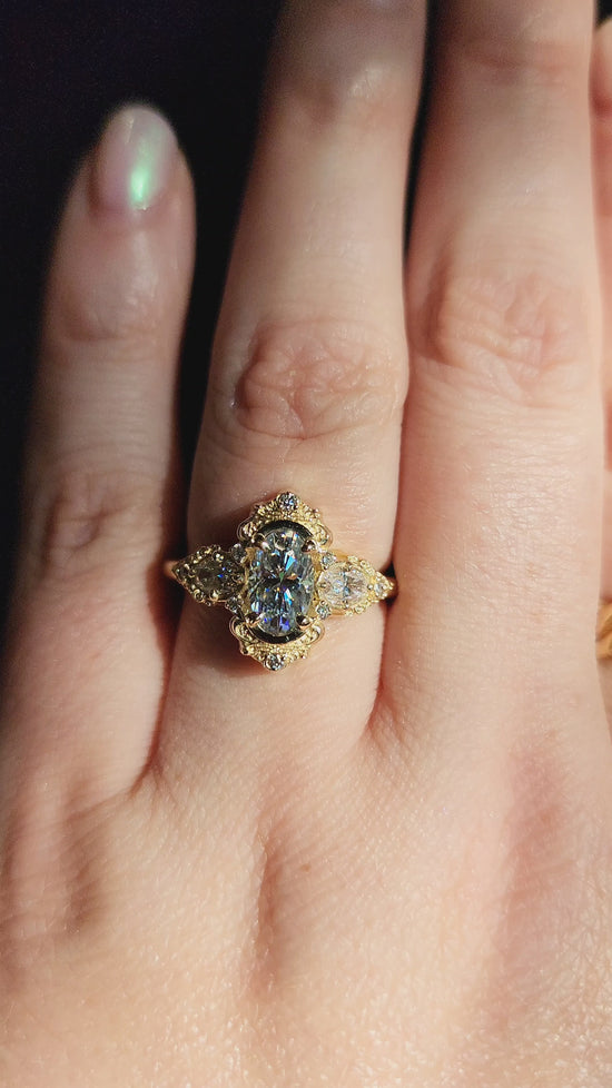 *A note regarding center stones. The oval moissanites tend to be cut to be deeper in profile than the lab diamonds, so if you are looking for a lower profile ring I would recommend the lab diamond center stones.