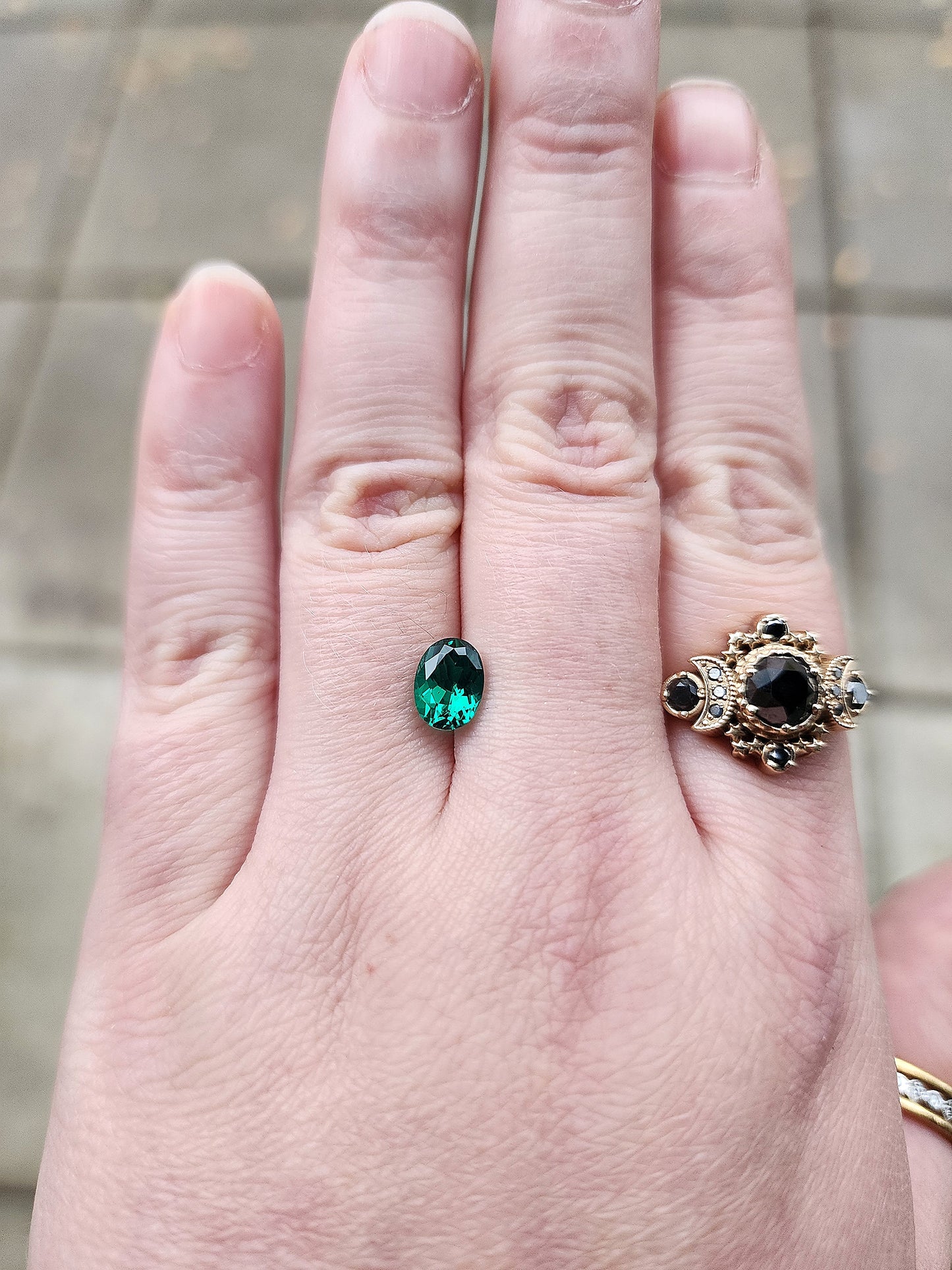Faceted Lab grown Chatham Emerald Oval in your size preference.