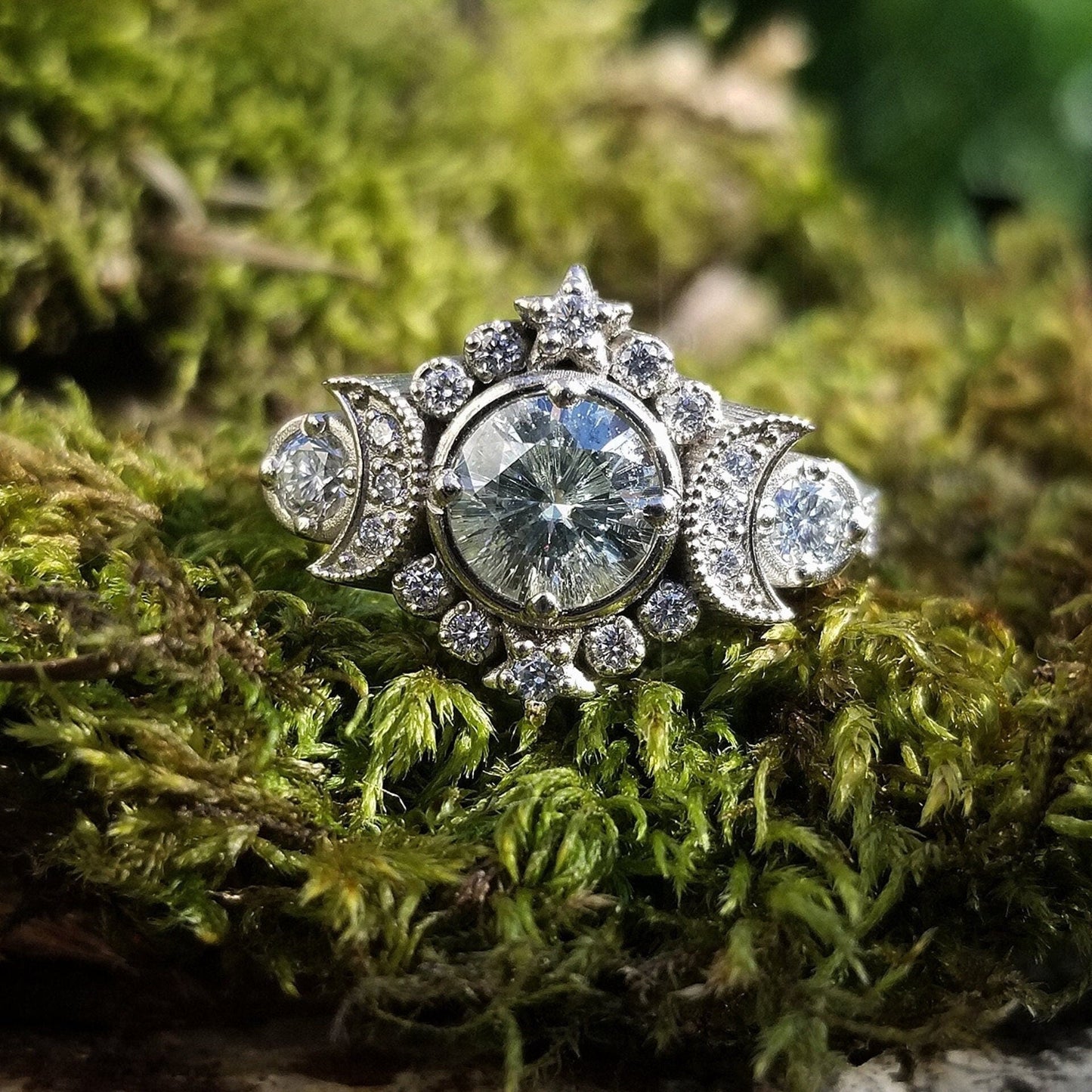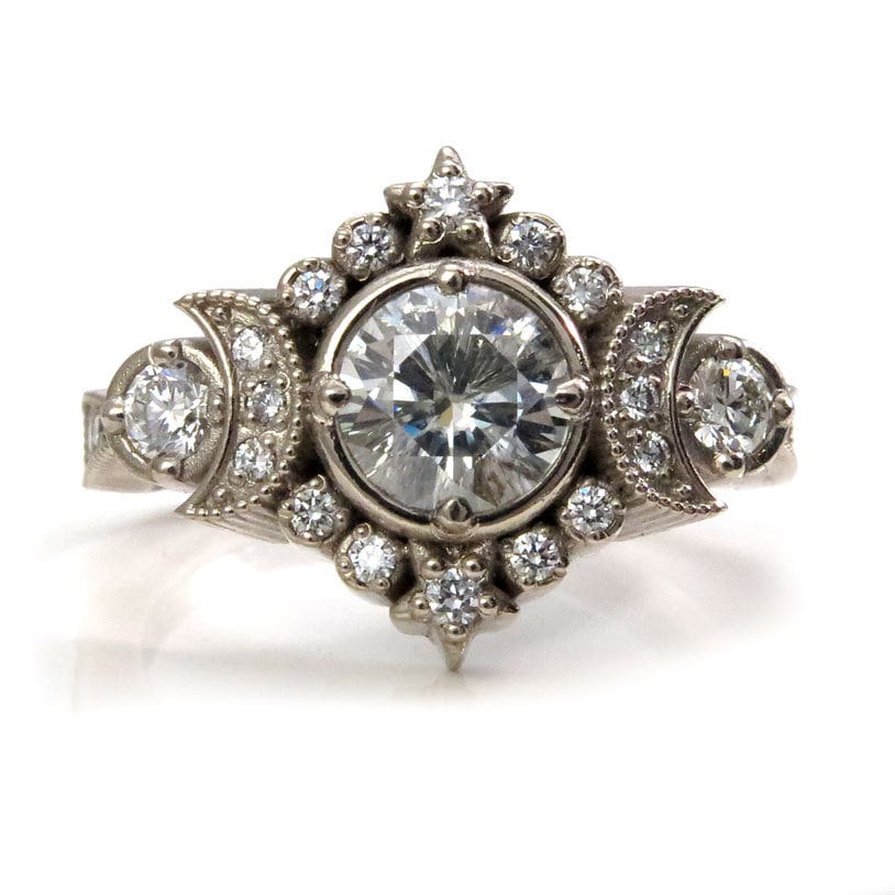 *Setting Only* Selene Goddess Engagement Ring for Build you own Ring, ALL Diamond Sides Black or White