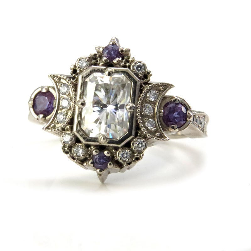 - Side Gems - Largest 4 Chatham Alexandrite (approx. .25ct), others are natural diamonds VS clarity approx. .20 carats.